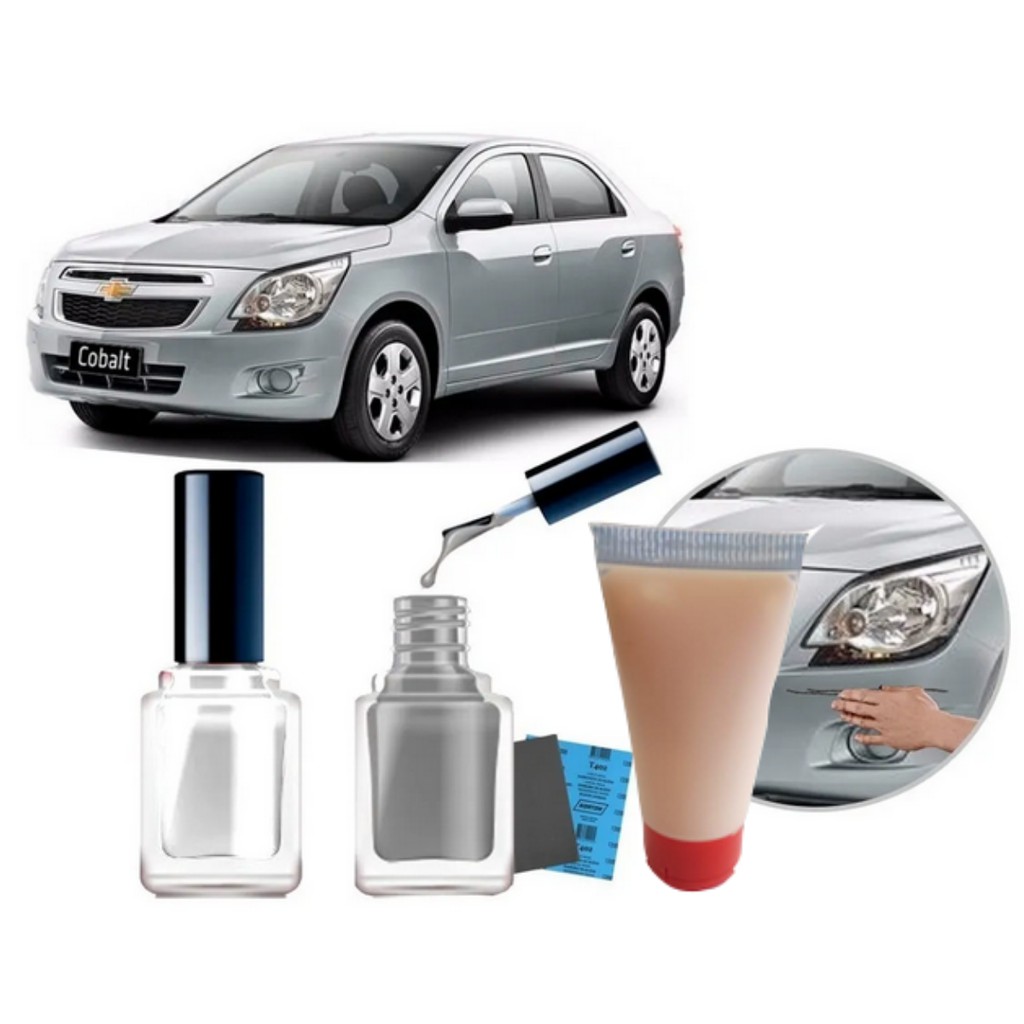 Tinta Tira Risco Automotivo Chevrolet Cobalt Prata Switchblade 10ml + Cera De Polir 15ml Polimento