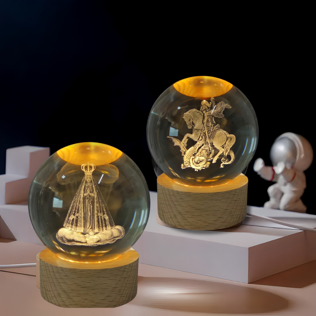 Mini Luminária Bola de Cristal Led Globo De Vidro Maciço Enfeite Decorativo 3D