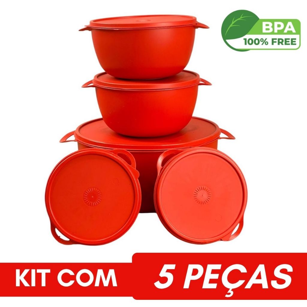 Kit 5 Potes com jarra Plastico Redondos Marmitas Grandes Bowl Livre Bpa