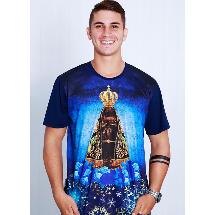Camisa camiseta blusa Poliéster Nossa Senhora Aparecida Linear Igreja Católica Promoção barato