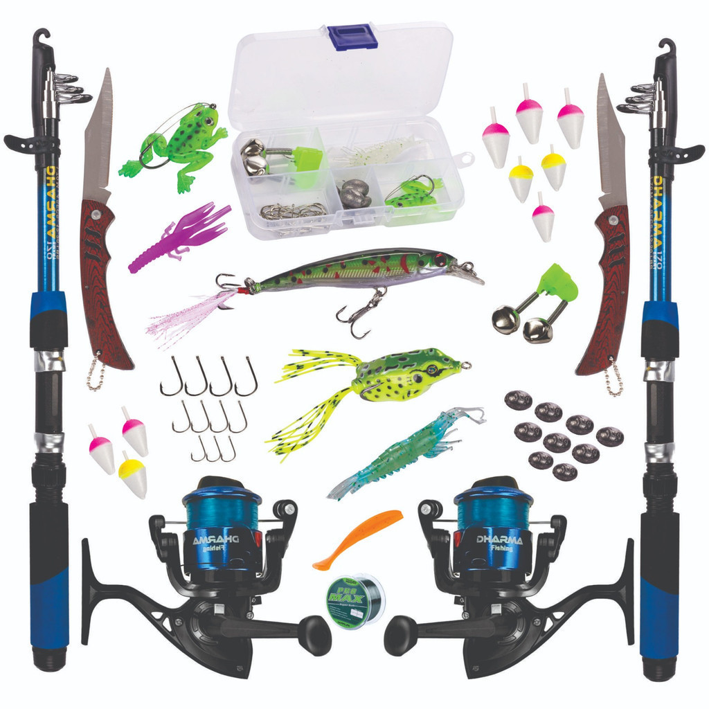 Kit De Pesca Completo 10kg C/ 2 Varas 2 Molinetes Estojo Sambura Canivete mais itens