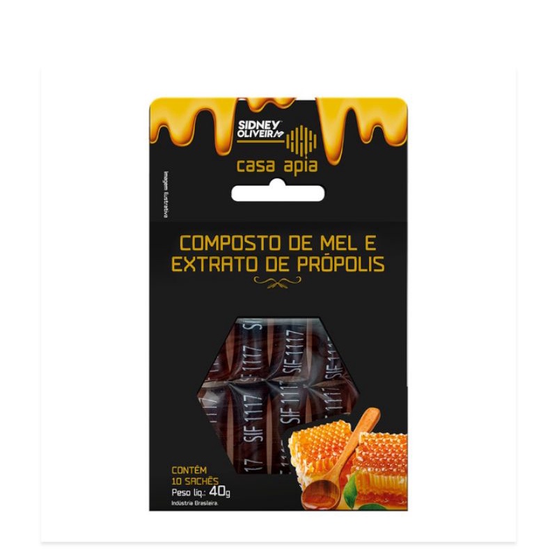 MEL + EXTRATO DE PRÓPOLIS 40G 10 SACHÊS CASA APIA SIDNEY OLIVEIRA
