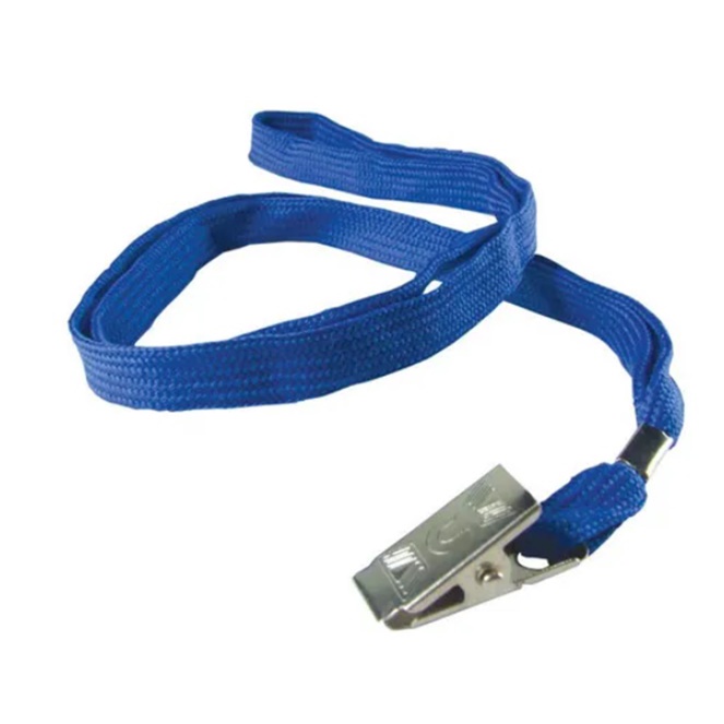 Cordão para Cracha Azul Liso 10mm com Clips Jacaré