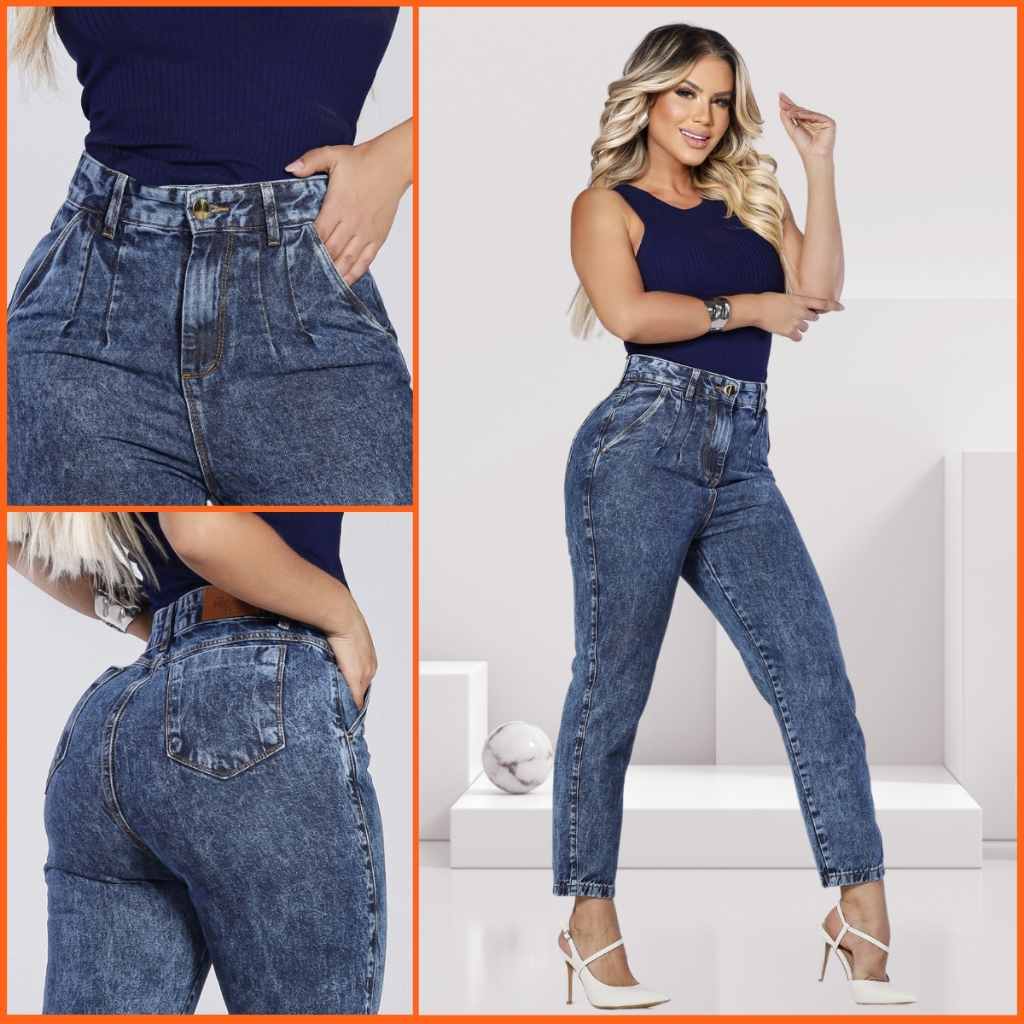 calça jeans mom feminina cintura alta 100% algodão premium
