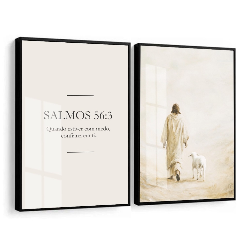 Quadro Decorativo Jesus Cristo Salmo Confiarei em Ti Frases com Vidro