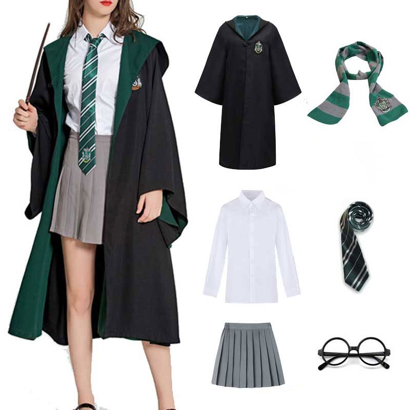Kids Adult Slytherin Robe Cloak Costume For Children Men Women Magic School Uniform Wizard Cosplay Halloween Costume