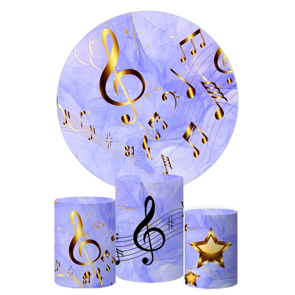 Kit Painel Redondo + Trio Capas Cilindro Festa Aniversário Notas Musicais