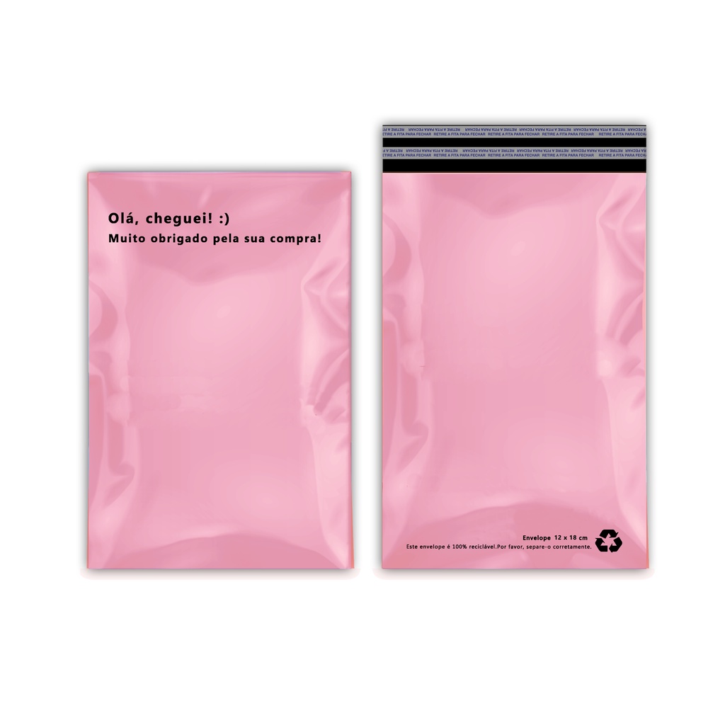 Kit 100 Envelope Segurança Rosa Bebê 12x18cm Lacre Embalagem Envio Correios Resistente Brilhante