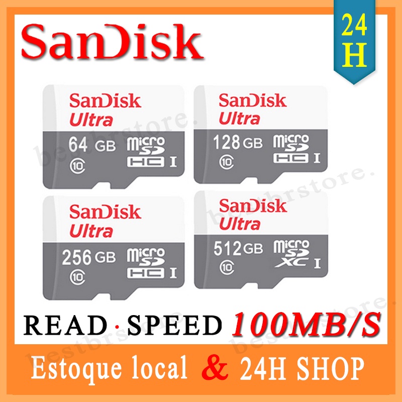 Cartão de Memória Sandisk 100% original Ultra 16gb 32gb 64gb 128gb 100mb/s Classe 10 Micro sd para smartphones notebooks fones cameras