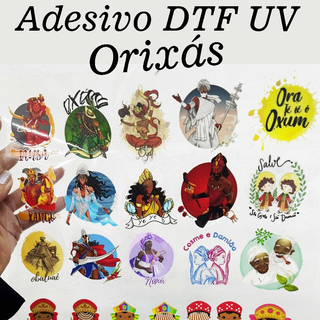 20 Adesivos DTF UV ORIXÁS, imagens e frases religiosas de Orixás e entidades.