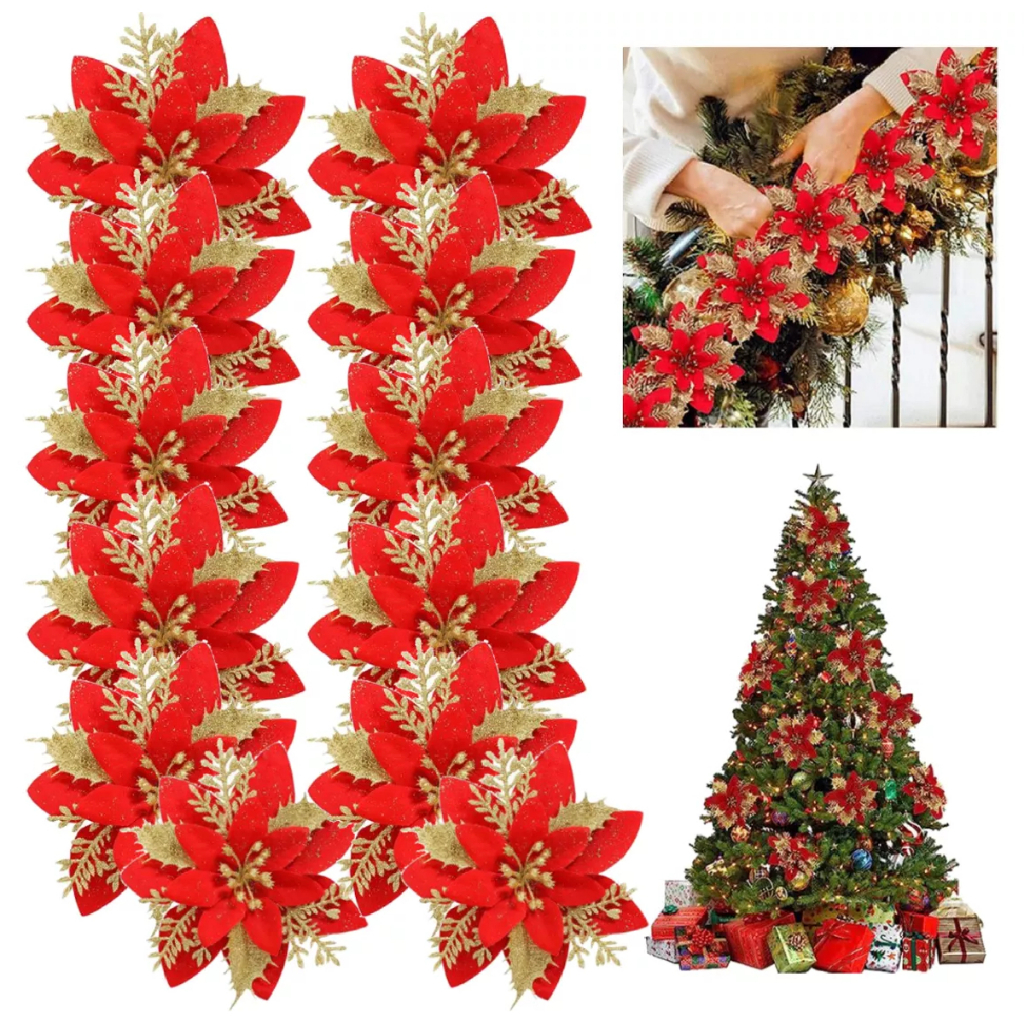 Kit 12 Flores De Natal Pick Up Arvore Artificial Decoração Enfeites Para Arvore de Natal