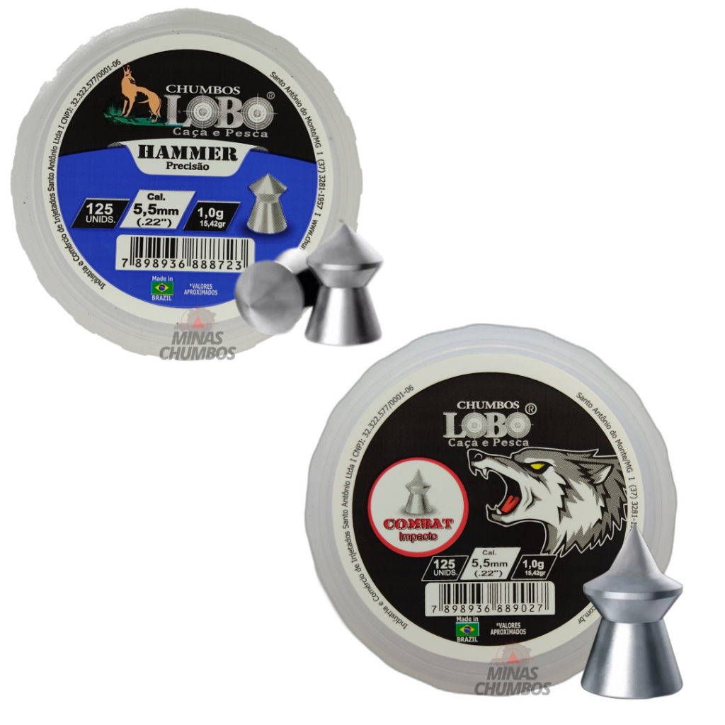 Kit com 02 Chumbinhos - Hammer e Combat 5,5 mm - 250 Unidades - Lobo