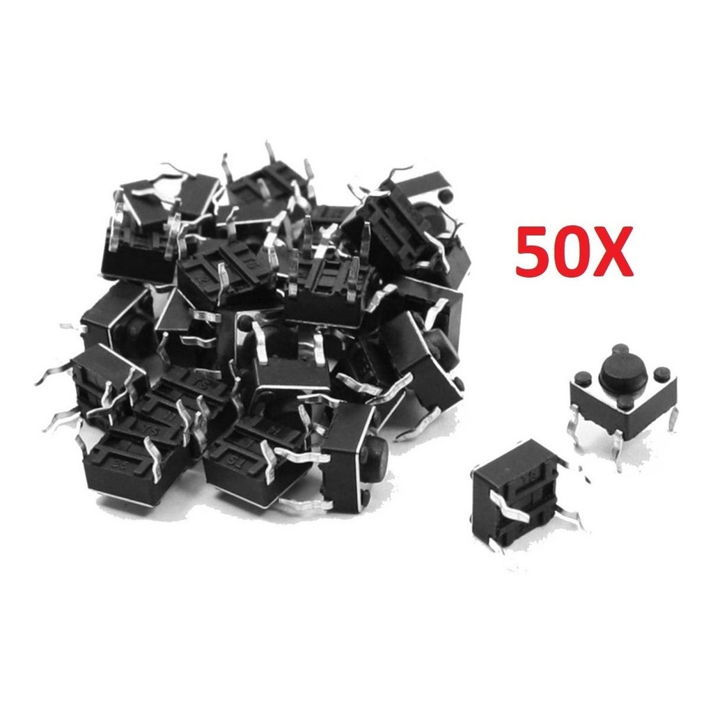 Botão Microchave Push Button 4 Pinos - 50 Peças - 6x6x5 Mm
