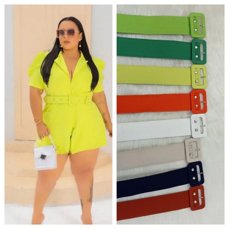 Macaquinho Plus Size Feminino Short Saia com Cinto Veste do 46 ao 52