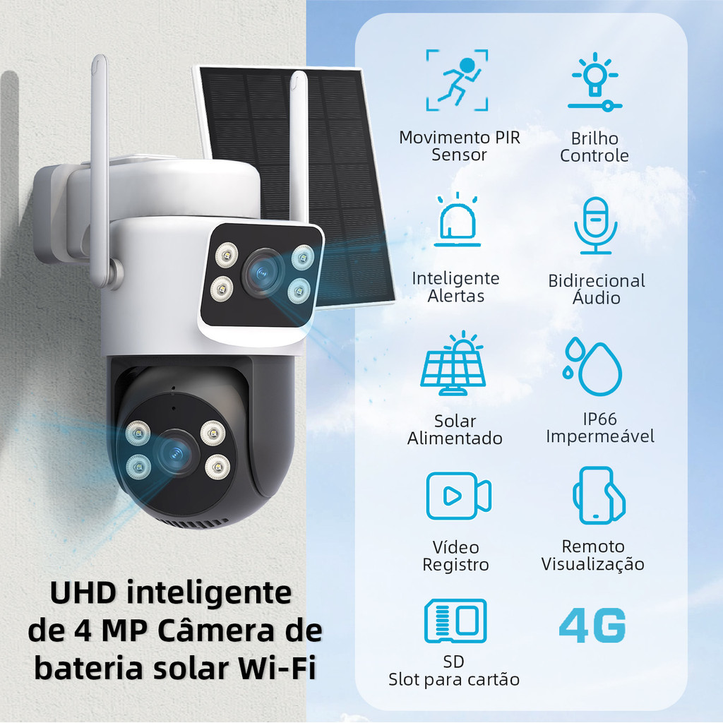 Câmera Com 4G Externa Solar Ip a prova D'água 360º Speed Dome Profissional Wifi Ptz Full Hd Onvif bivolt