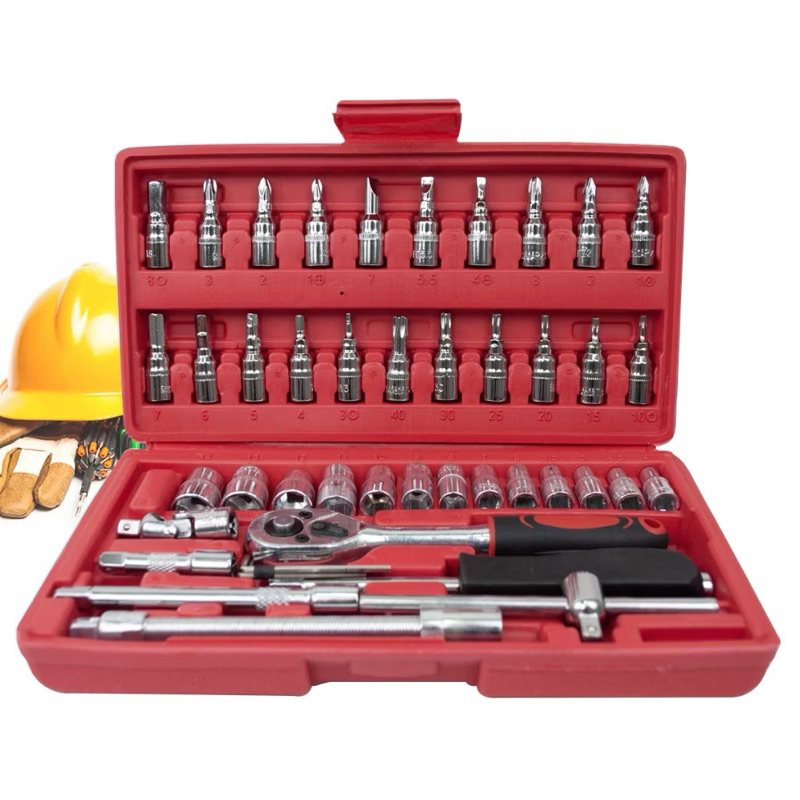 Kit De Ferramentas 46 Peças Jogo De Soquetes Chave Catraca Reversível Com Maleta Jogo De Ferramentas Completo ga-57