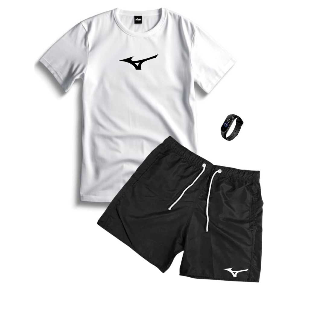 Conjunto Kit camiseta 100% algodão 30.1 MZ bermuda leve para academia RELOGIO DIGITAL