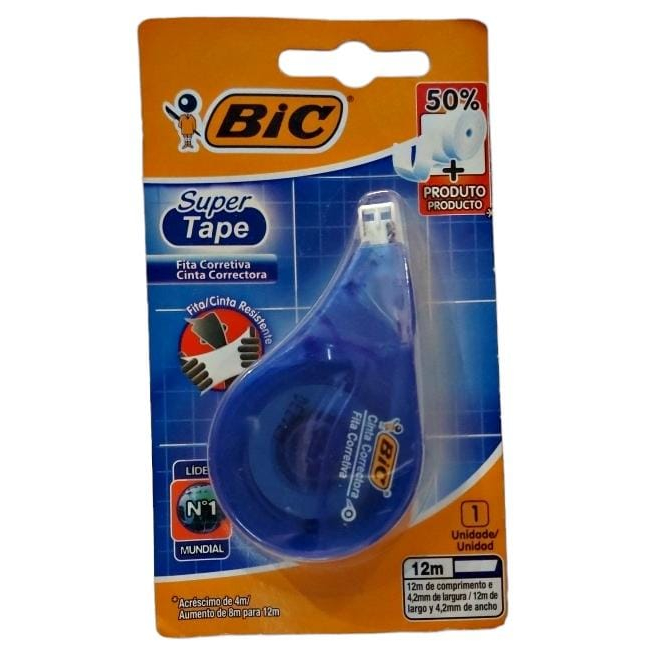 Kit Branquinho Corretivo em Fita Super Tape Bic 12 Metros