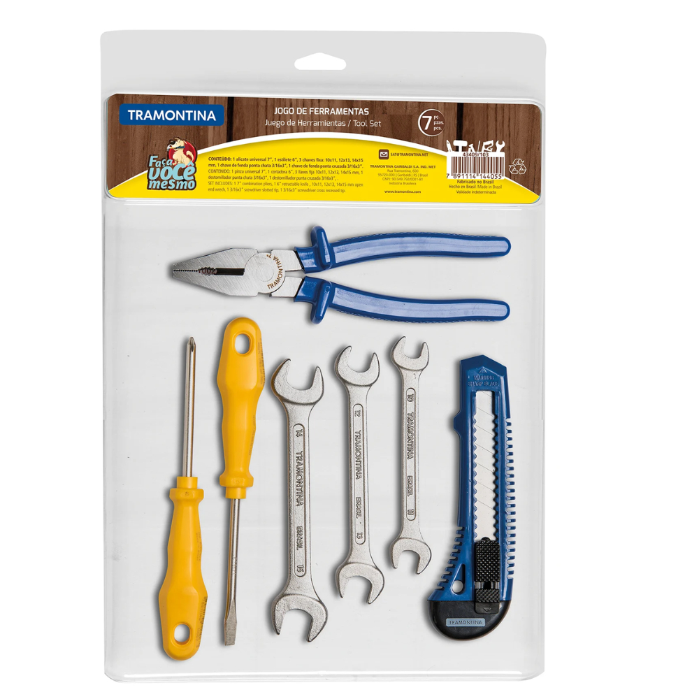 Kit Ferramentas 7 Peças Contem 1 Alicate, 2 Chaves de Fenda, 3 Chaves Fixas e 1 Estilete Tramontina
