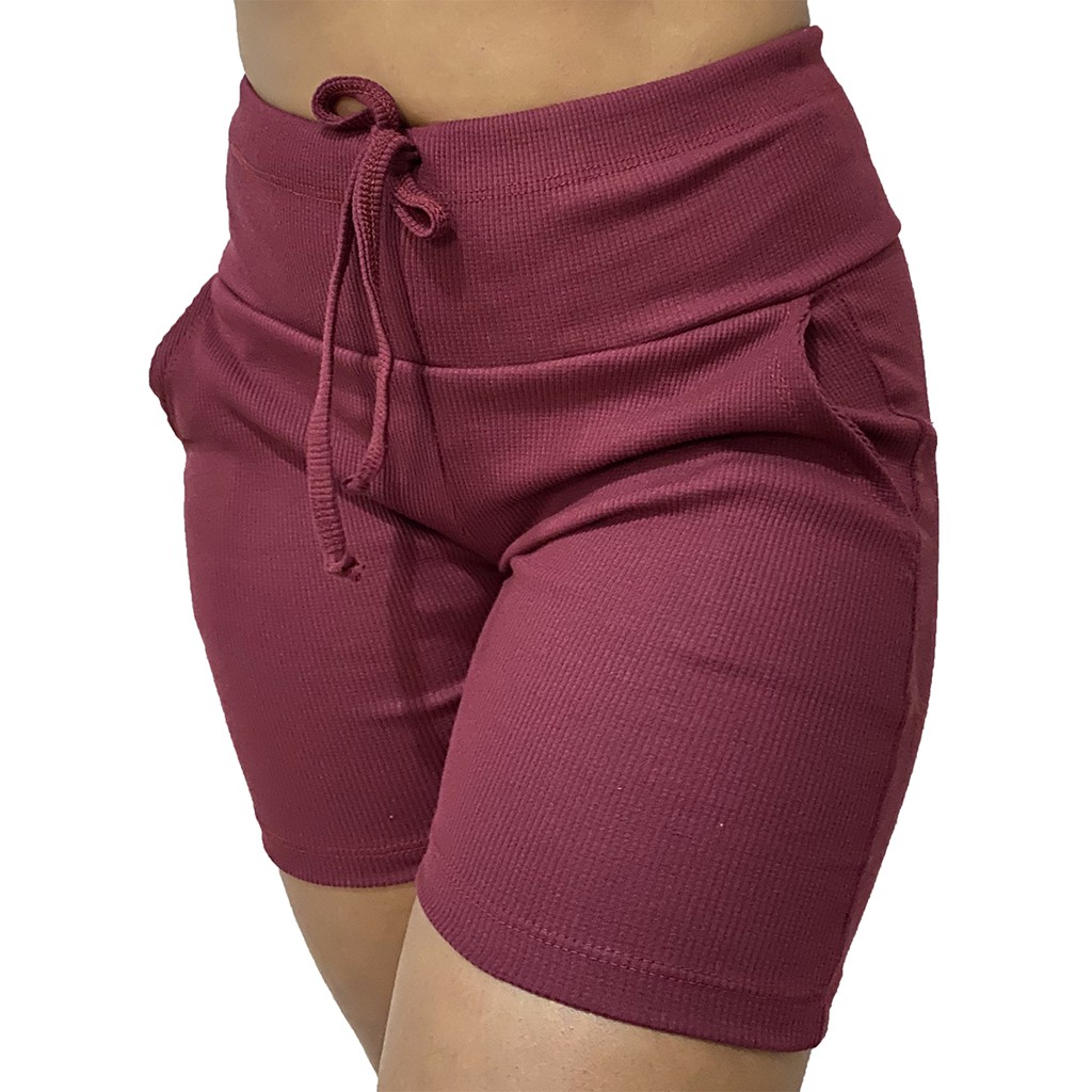 Shorts Meia Coxa Em Suplex Cintura Alta Lisos e 3D