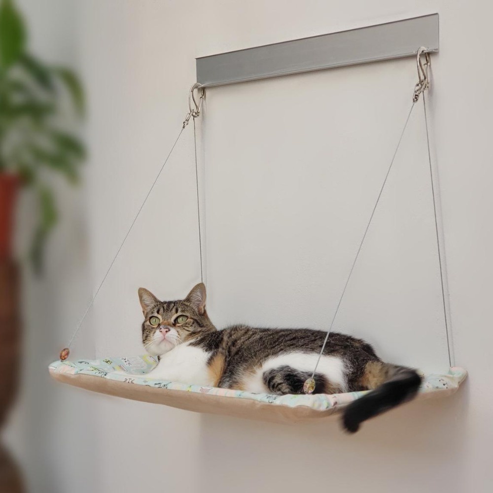 Rede De Gatos Elevado 33x80cm Madeira Pinus com Pano Algodão Acessórios E Descanso Para Gatos Médio e Grande Porte