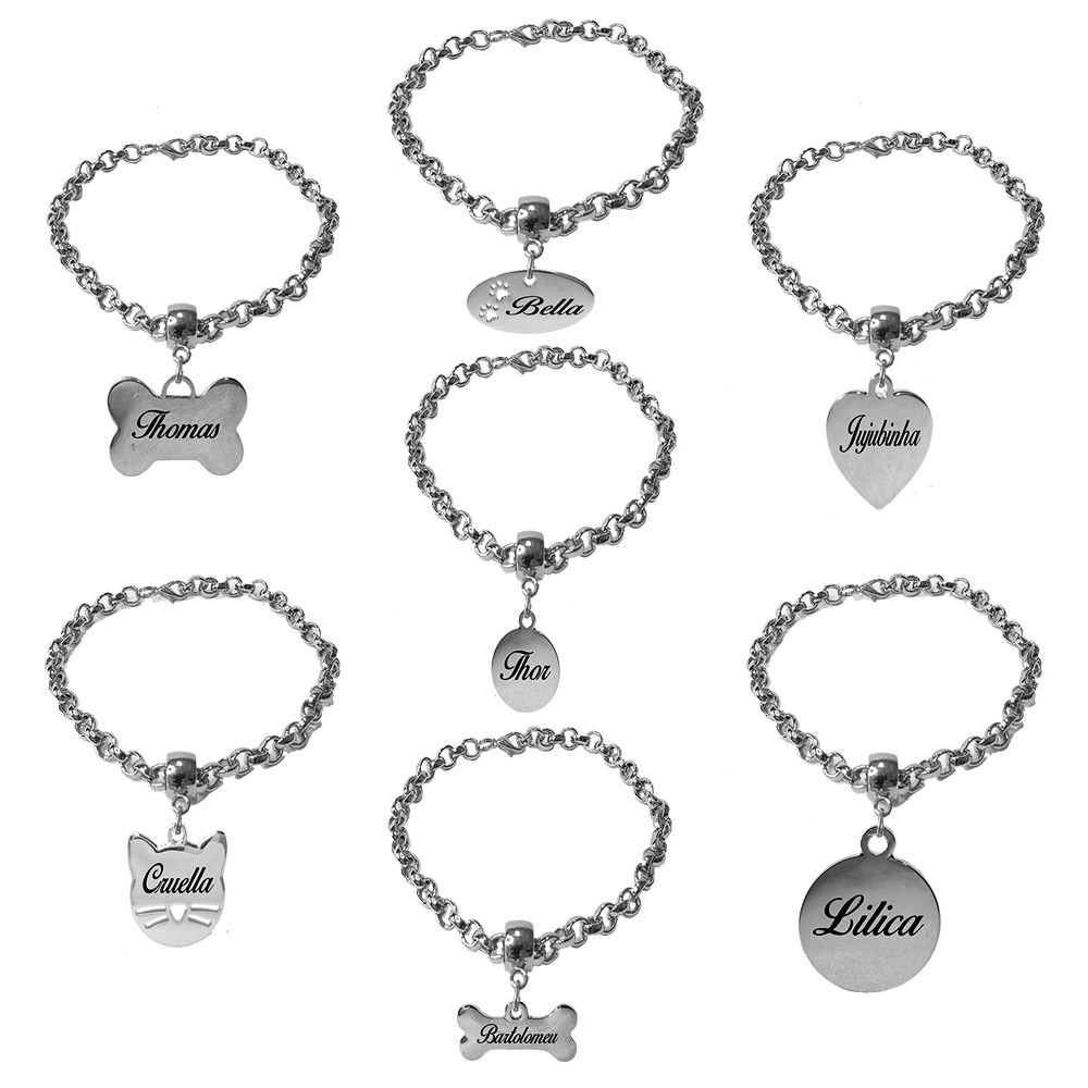 Coleira Corrente Nome Telefone Gravado Laser Identificação Placa Plaquinha Osso Coração Redonda Oval Niquel Cachorro Gato Pet Personalizada Feita Sob Medida