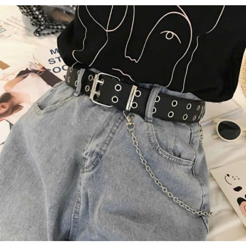 Cinto Punk Rock Ilhós duplo com corrente | Harajuku, Egirl, Cosplay, Ghotic, Kpop , Tumblr e Kawaii .