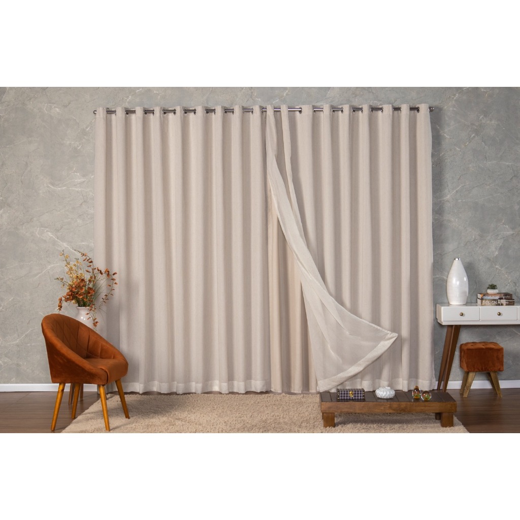 Cortina Luxo Voil Gaze De Linho Com Forro Blackout 6,00x2,80 Sala e Quarto