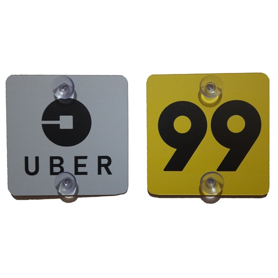 Placa UBER ou 99 Para Transporte De Passageiros Com Ventosas 10x10cm