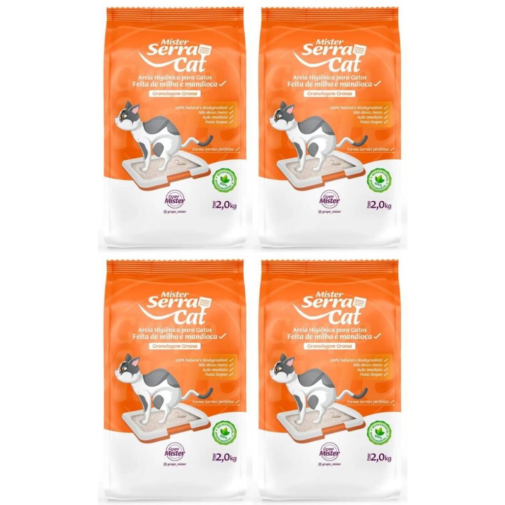 Kit 4 Areia Higiênica para Gatos Feita de Milho e Mandioca Mister Serra Cat Grossa 8 KG