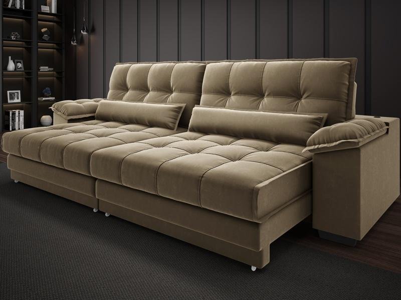 Sofá Retrátil e Reclinável com Molas Ensacadas e Carregador Usb Colosso 2,50m Veludocristal