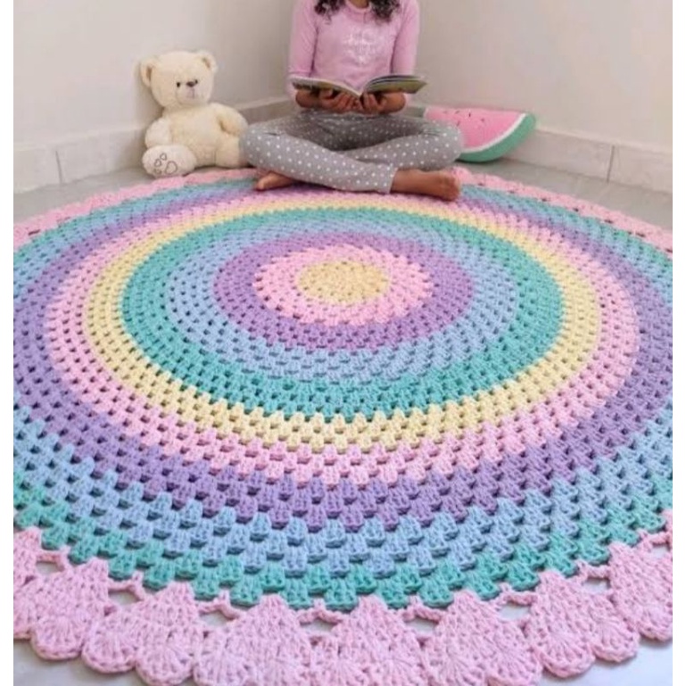 tapete redondo para quarto,sala, cozinha, quarto infantil moda blogueira salão de beleza esmalteria de crochê em barbante, tam pequeno médio ou grande