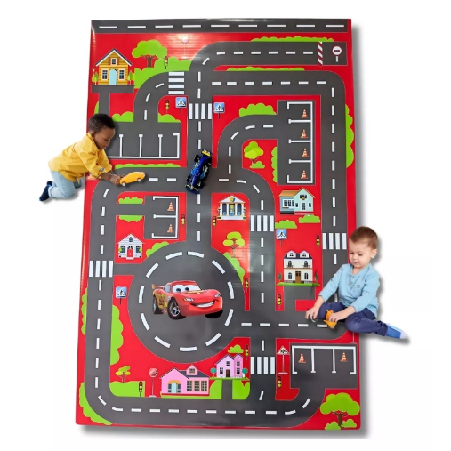 Tapete Infantil Criança Grande Pista Carrinho Corrida Hot 2x1m Menino Carros Cidade Lona