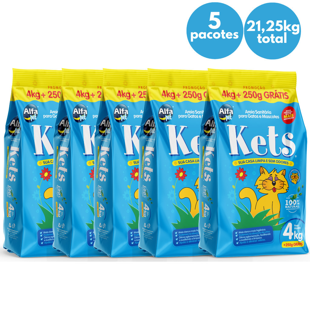 Kit 5 Areia Kets Para Gato Higiênica Sanitária Elimina Odores 4,25kg