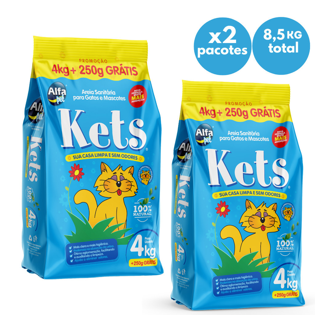 Kit 2 Areia Kets Para Gato Higiênica Sanitária Elimina Odores 4,25kg
