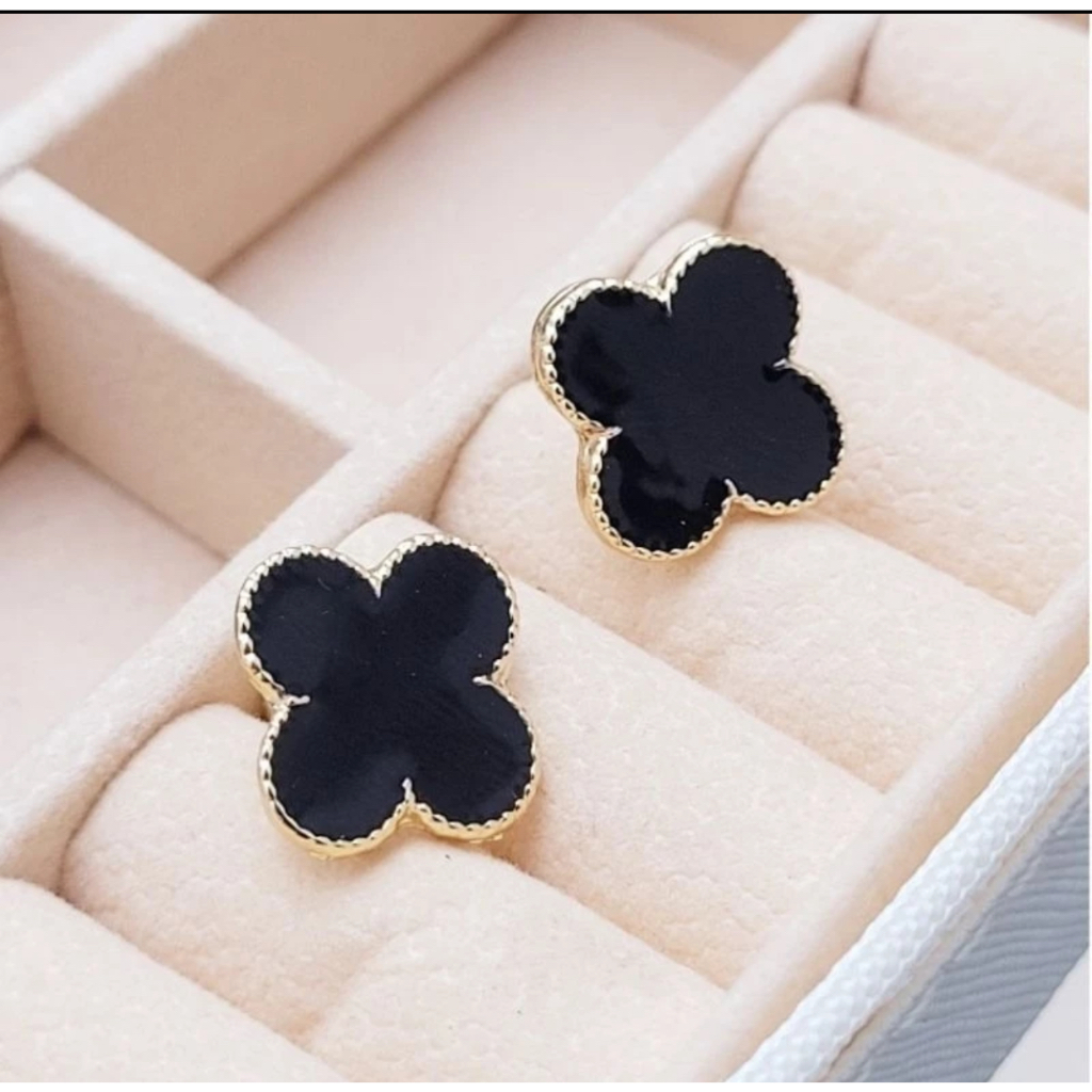 Brinco Van Cleef Preto Virginia Folheado a Ouro 18K