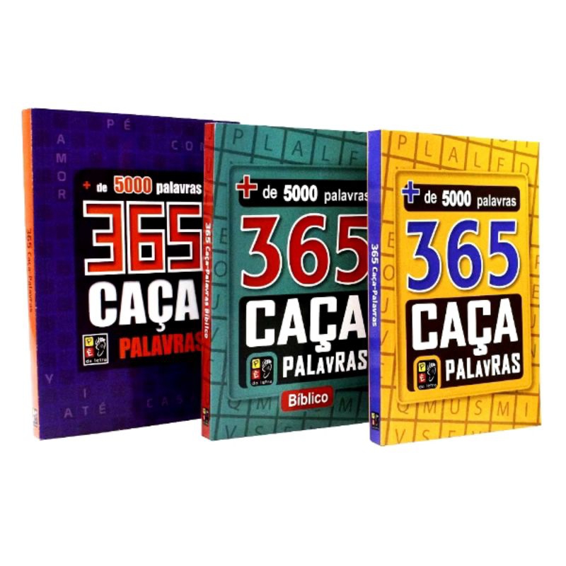 Kit 3 Livros 365 Caça Palavras Letra Grande Letrão Mais de 5000 Palavras e 366 páginas cada