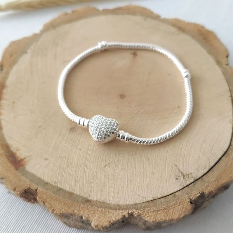 Pulseira Banhada a Prata 925 com Zirconia Fecho Coração Bracelete para Berloques Pingente Separador BRACELETE TODAS AS MARCAS