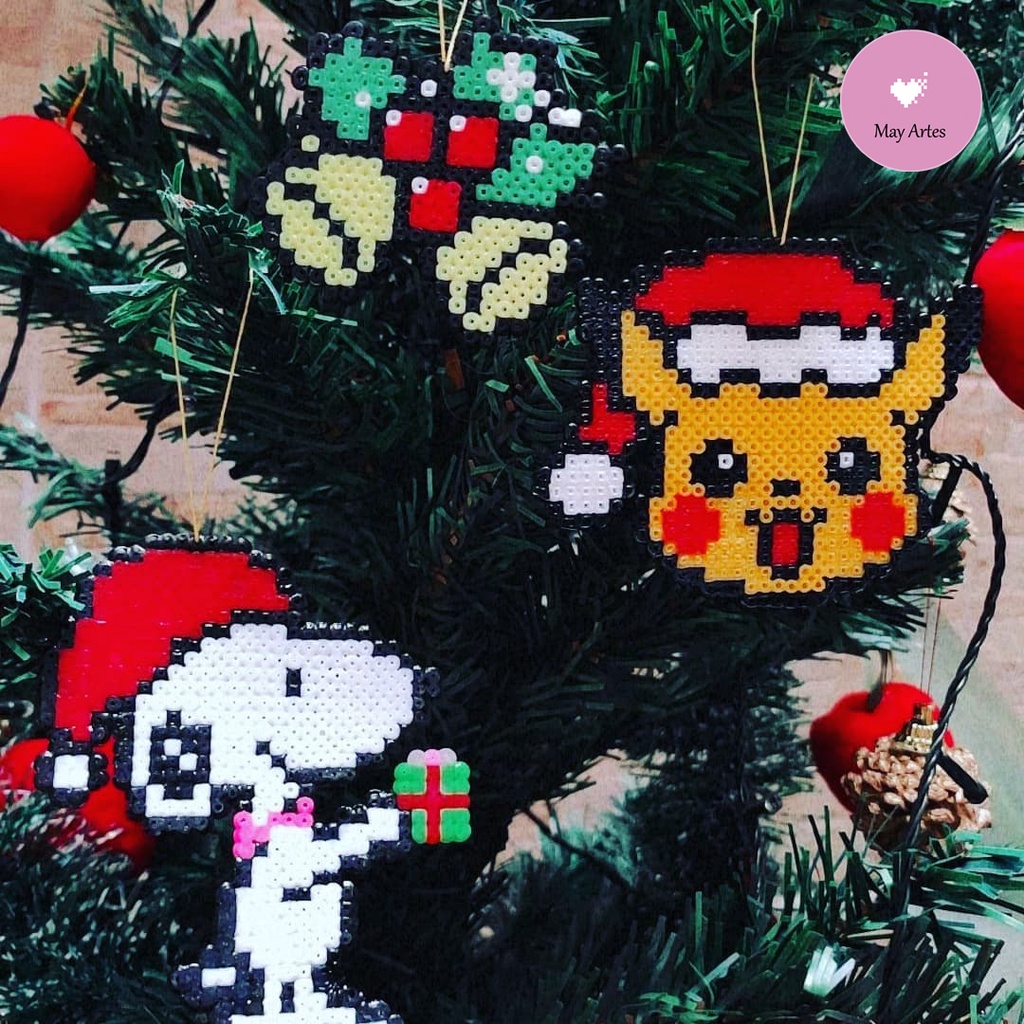 Enfeites de Natal em Pixel Art - Pikachu, Snoopy e Sinos de Natal