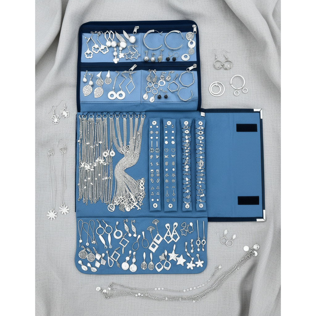 Kit Semi Jóias 20 pçs Folheadas Prata 925 com Mostruário Atacado Revenda Colar Brinco Anel Pulseira