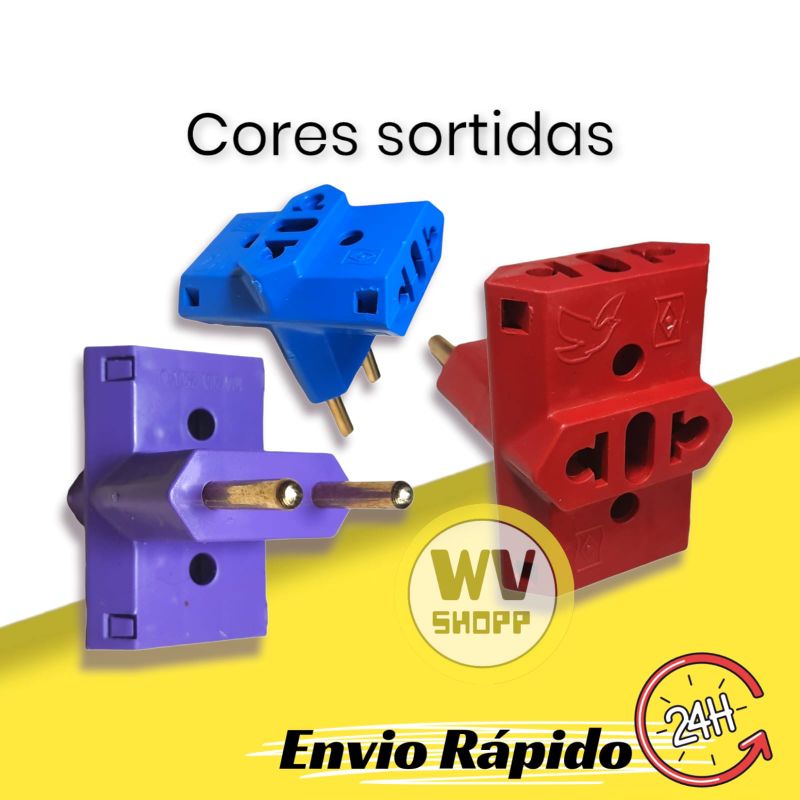 Kit 2 Pino Benjamim Adaptador Tipo T 10A 3 saidas 2P+Terra Colorido Bivolt Tomada Universal Cerge