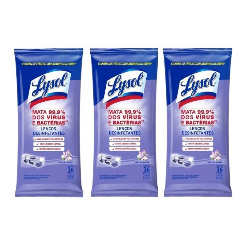 Kit c/ 3 Lenços Umedecidos Lysol Frescor Marinho cada pacote com 36 unidades BLACK FRIDAY