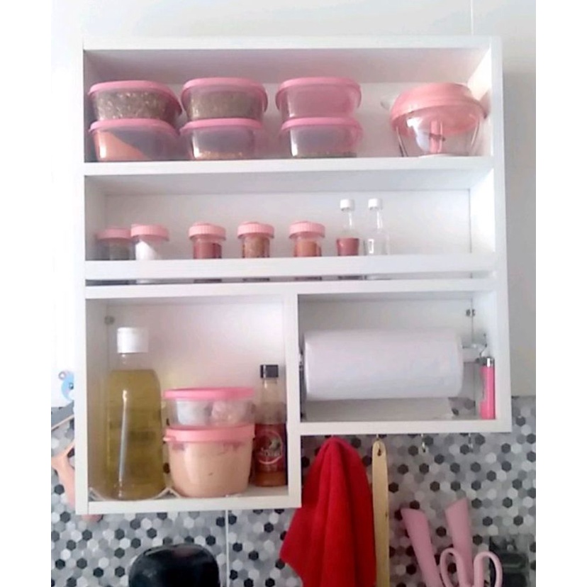 Prateleira Porta Temperos De Parede Para Cozinha Nicho com Suporte para Papel Toalha