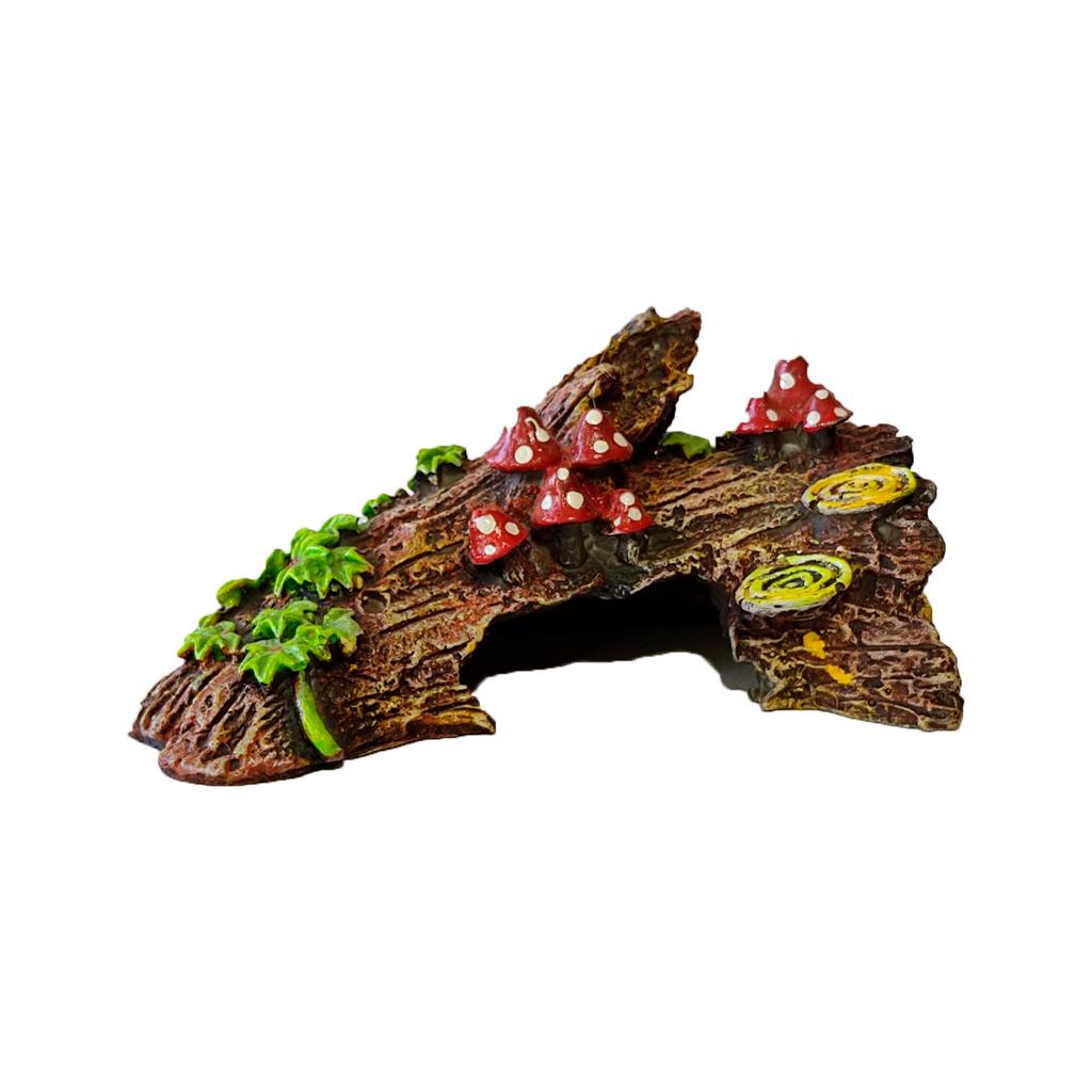Enfeite Resina Para Aquário Decoração Tronco Com Cogumelos
