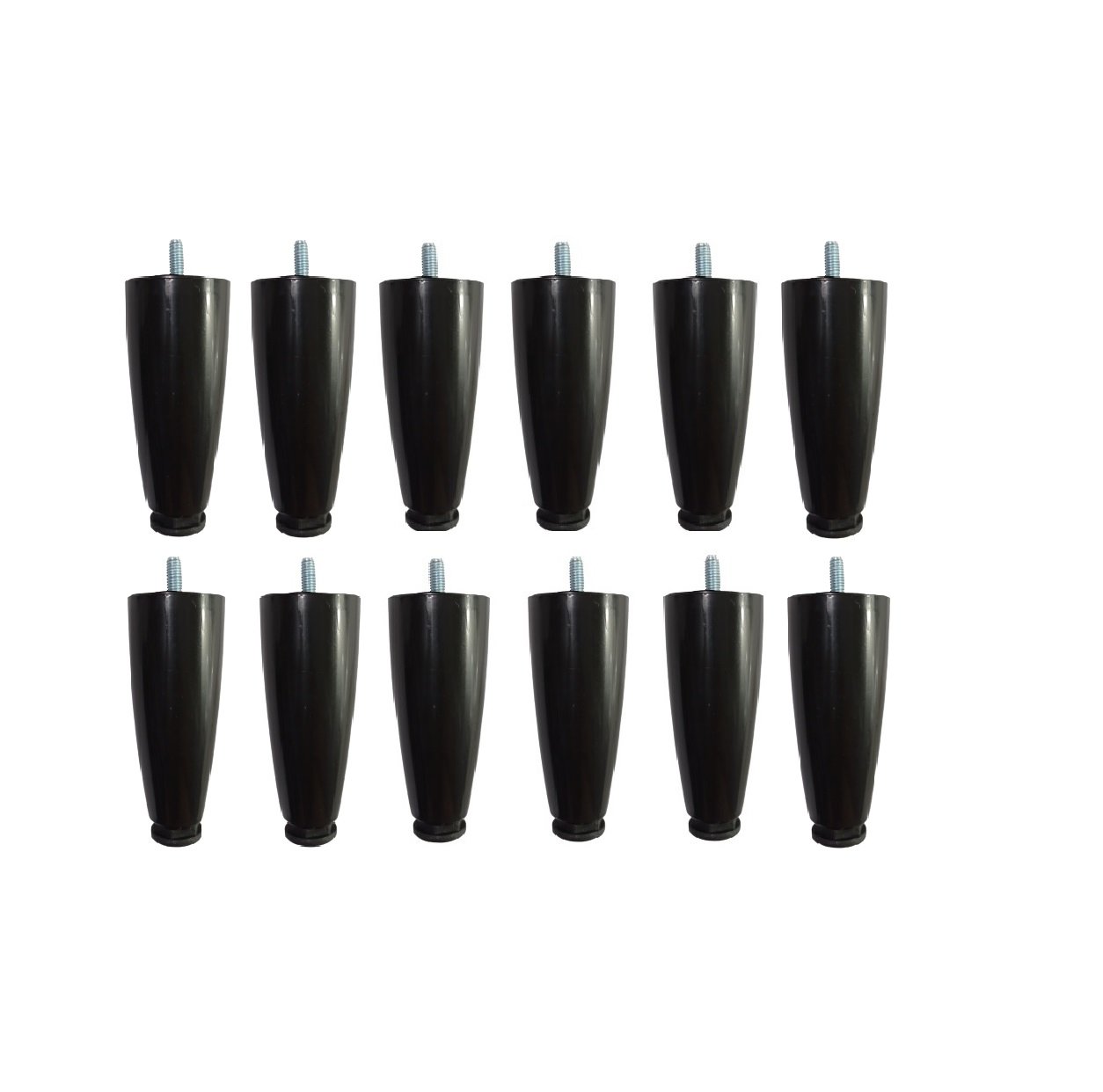 Kit 12 Pés para Cama Box ou Baú Juvene 12cm com Regulagem Cor:preto