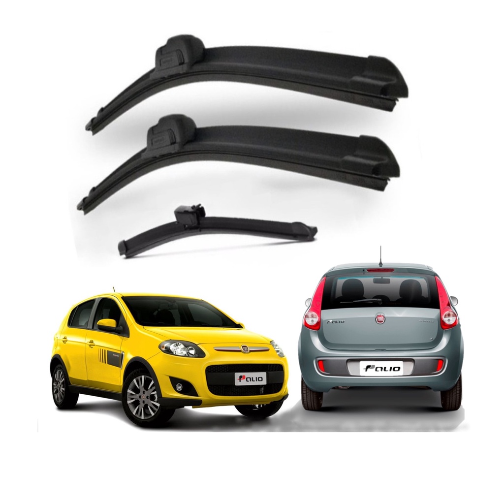 Jogo de Palhetas Dianteiras e Traseira Silicone Limpador Parabrisa Palio 2012 a 2017