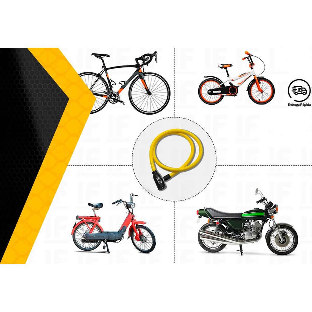 Corrente Cadeado Trava Bike Bicicleta Moto E Portões Com Chave Flexível 1 Metro Chevrolet