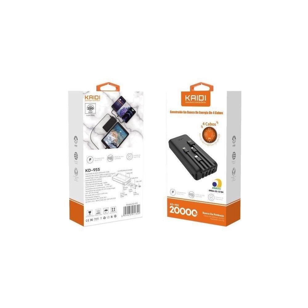 Power Bank Kaidi KD-955 20.000mah Carregador Portátil 955 4 cabos Rápido