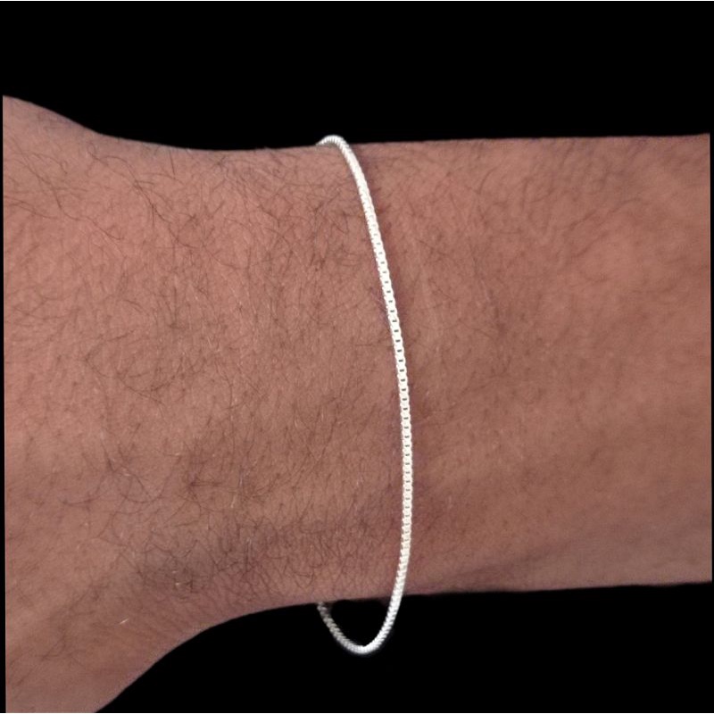 Pulseira Masculina Prata Fina 0.8mm Veneziana Banhada Prata 925