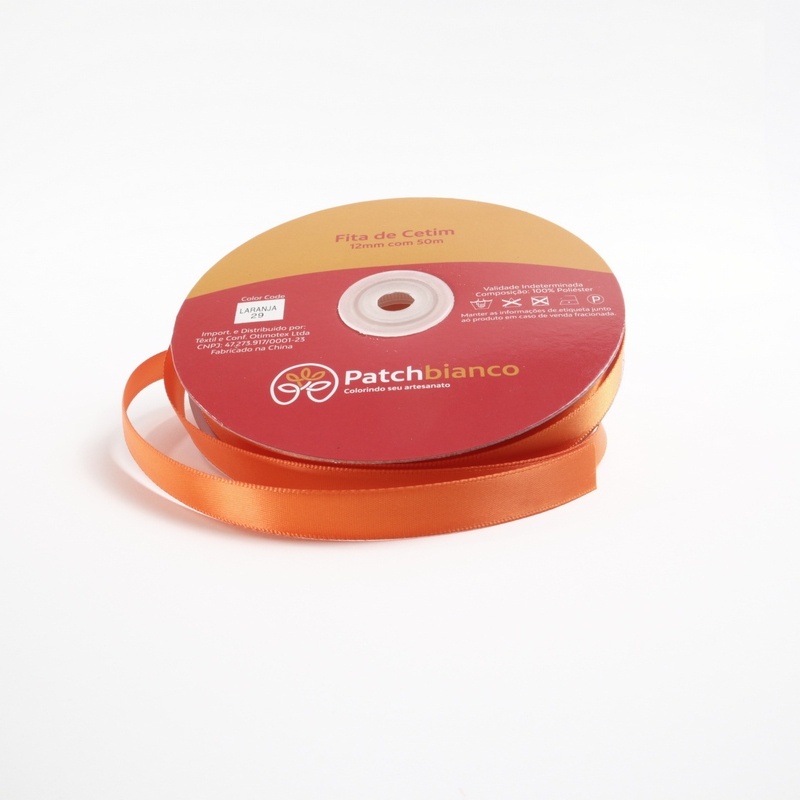 Fita de Cetim Laranja - 12mm - Rolo Com 50 Metros